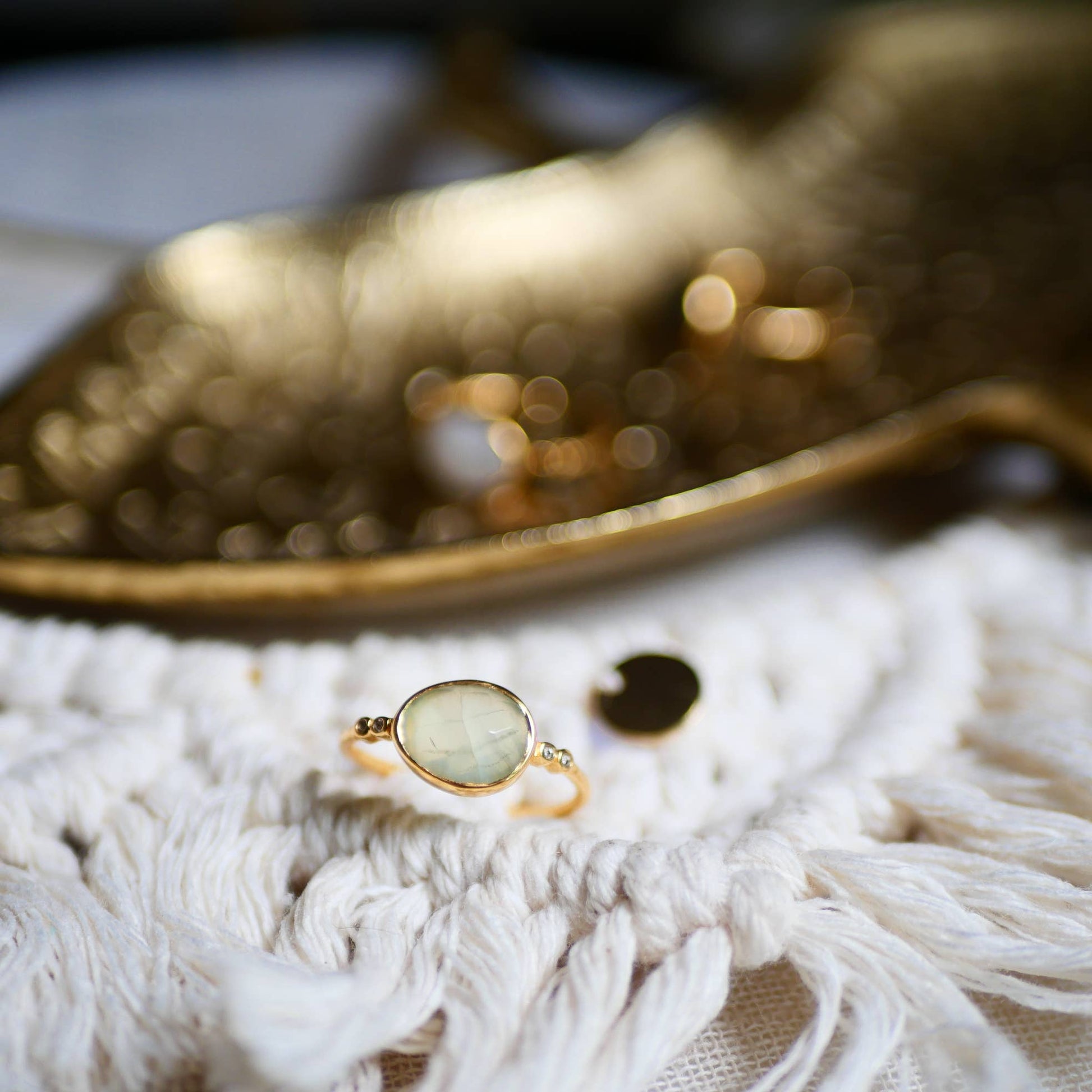 Lo compré como sorpresa y la reacción lo dijo todo. La piedra Prehnita tiene un brillo precioso y un color que transmite mucha calma. La calidad del anillo se nota al segundo, y la presentación está muy cuidada, perfecta para regalo.