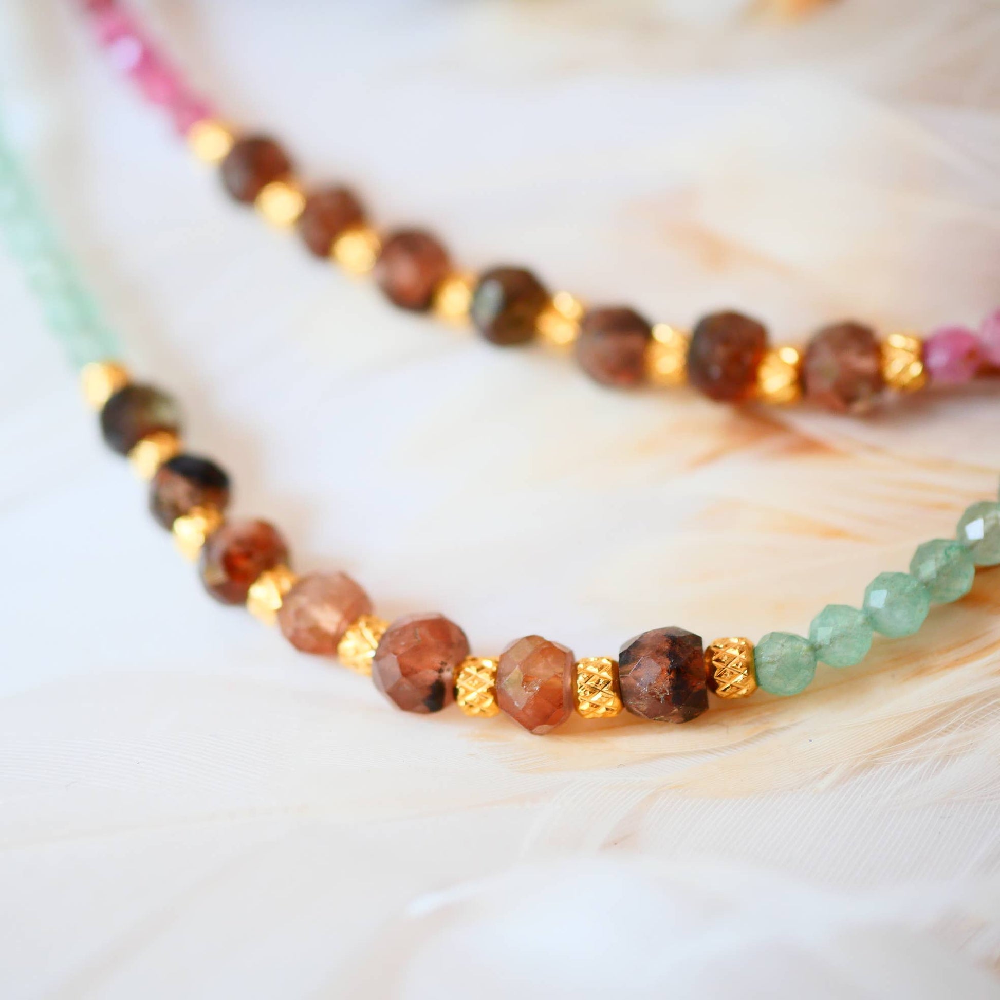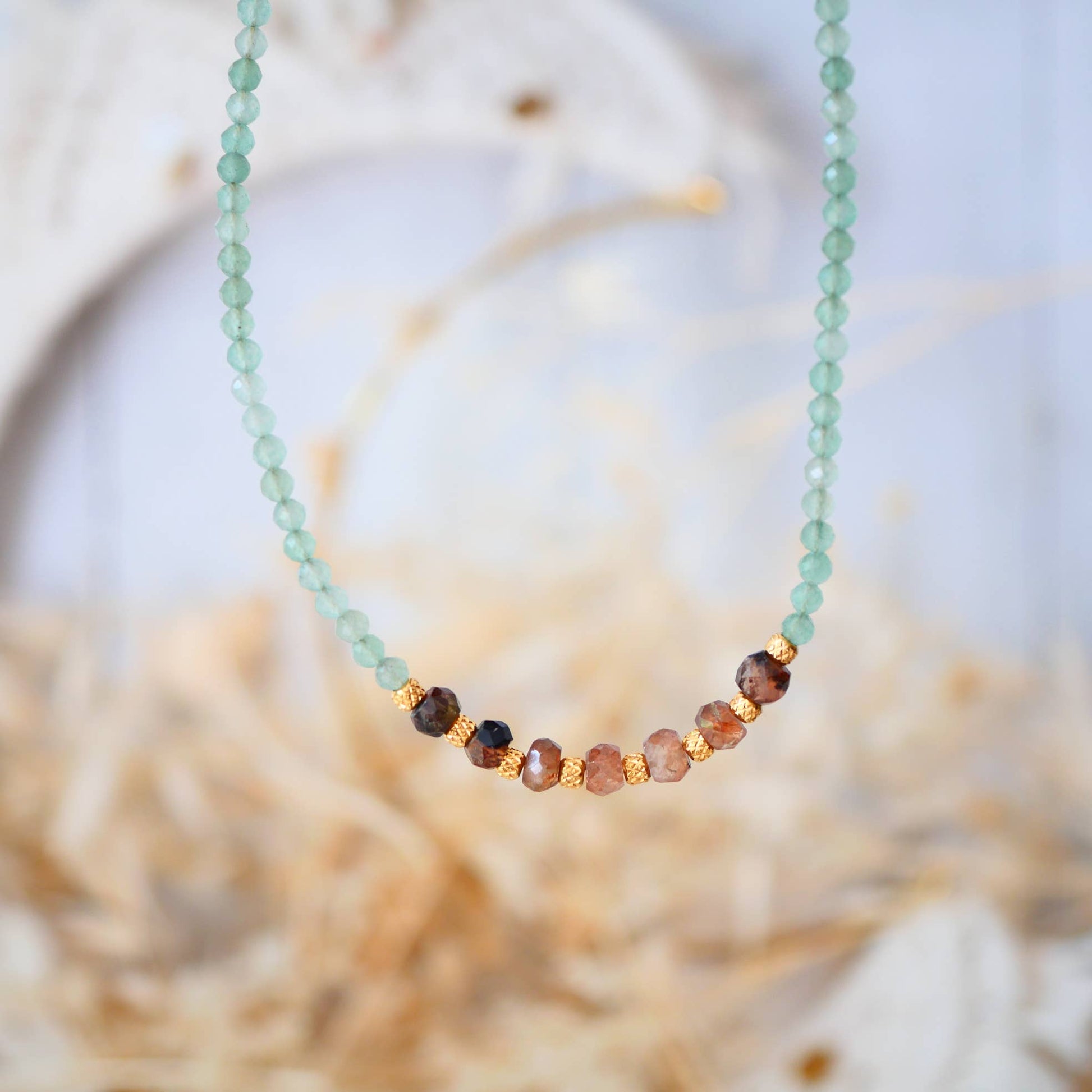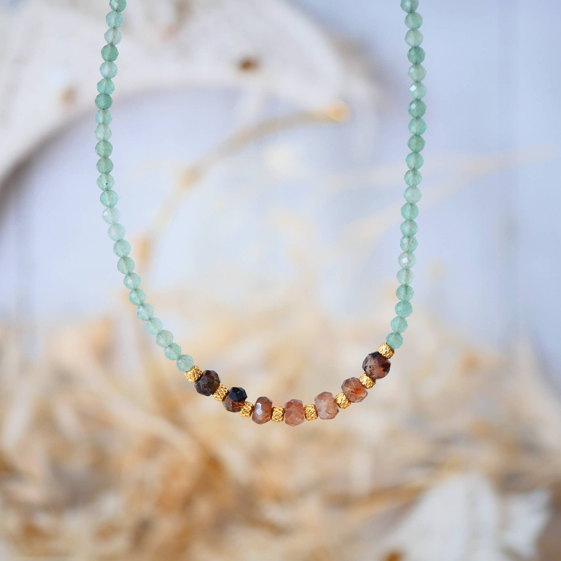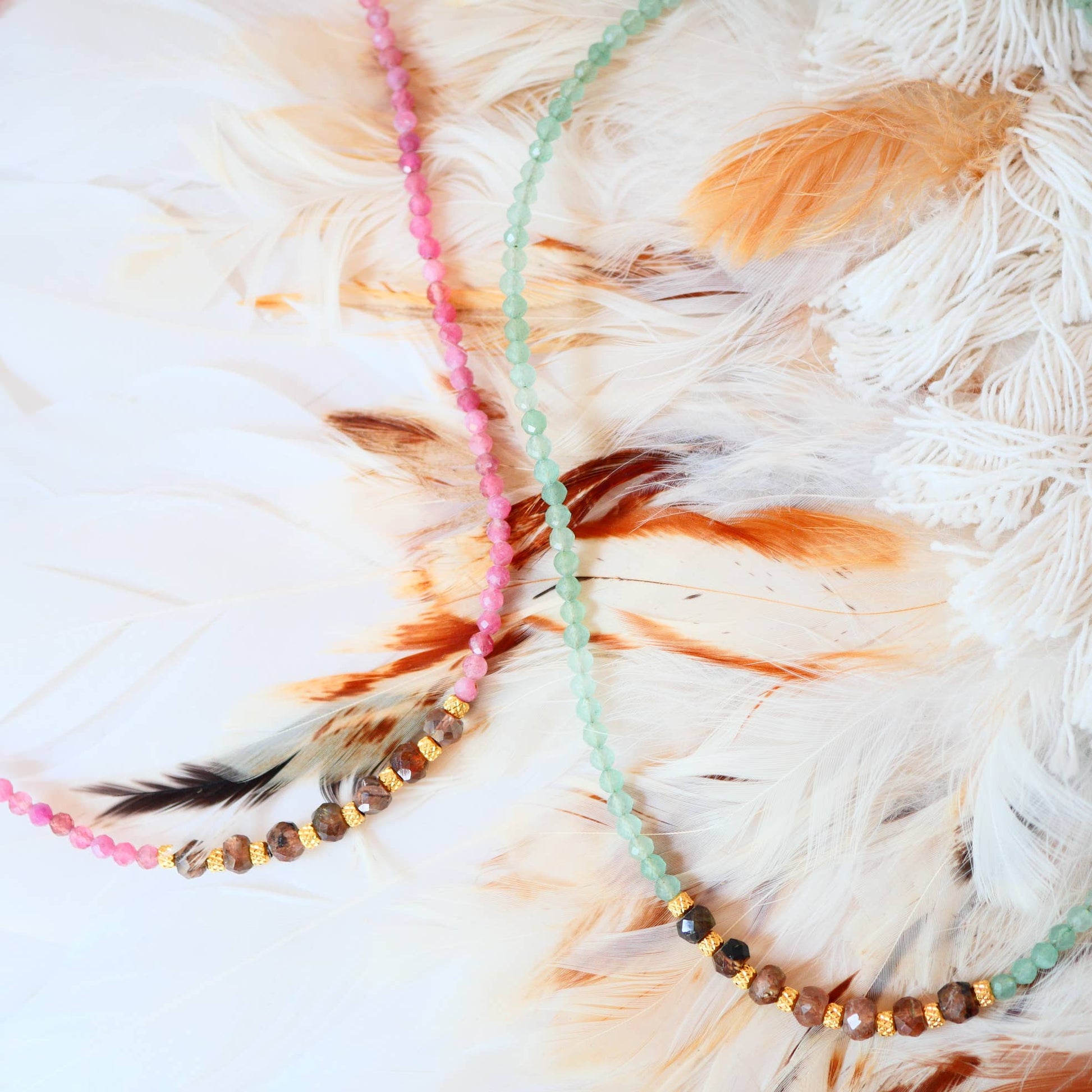 El Collar Hridaya, que significa “corazón” en sánscrito, es una joya talismán creada para acompañarte en procesos de apertura emocional, calma y equilibrio interior. Elaborado en acero inoxidable hipoalergénico, combina la energía protectora de la andalucita con turmalina rosa o aventurina, según el modelo elegido.