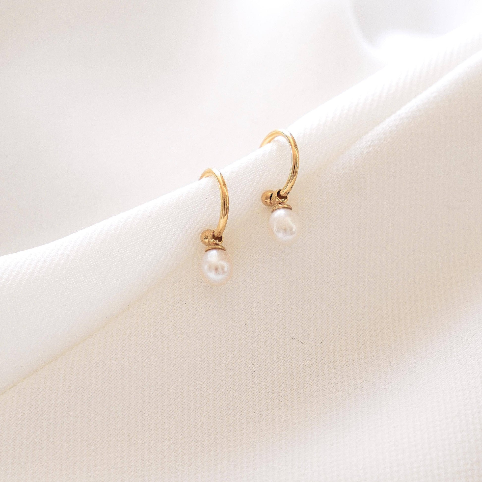 Pendientes de acero inoxidable mini aros perla