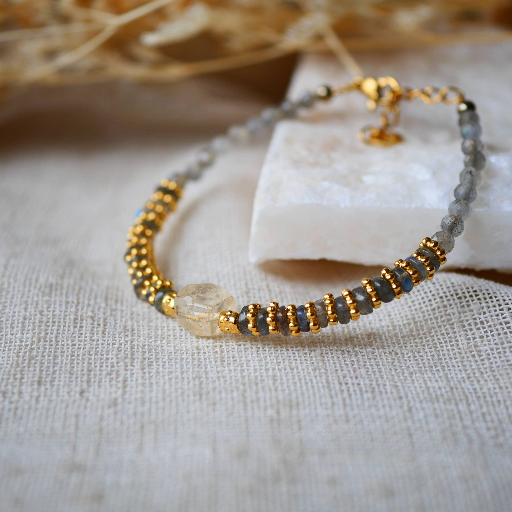 Una pulsera luminosa creada para acompañar nuevos comienzos con fuerza suave. Combina el brillo solar del Citrino, piedra de alegría y vitalidad, con la magia protectora de la Labradorita, conocida por fortalecer la intuición y equilibrar la energía emocional.